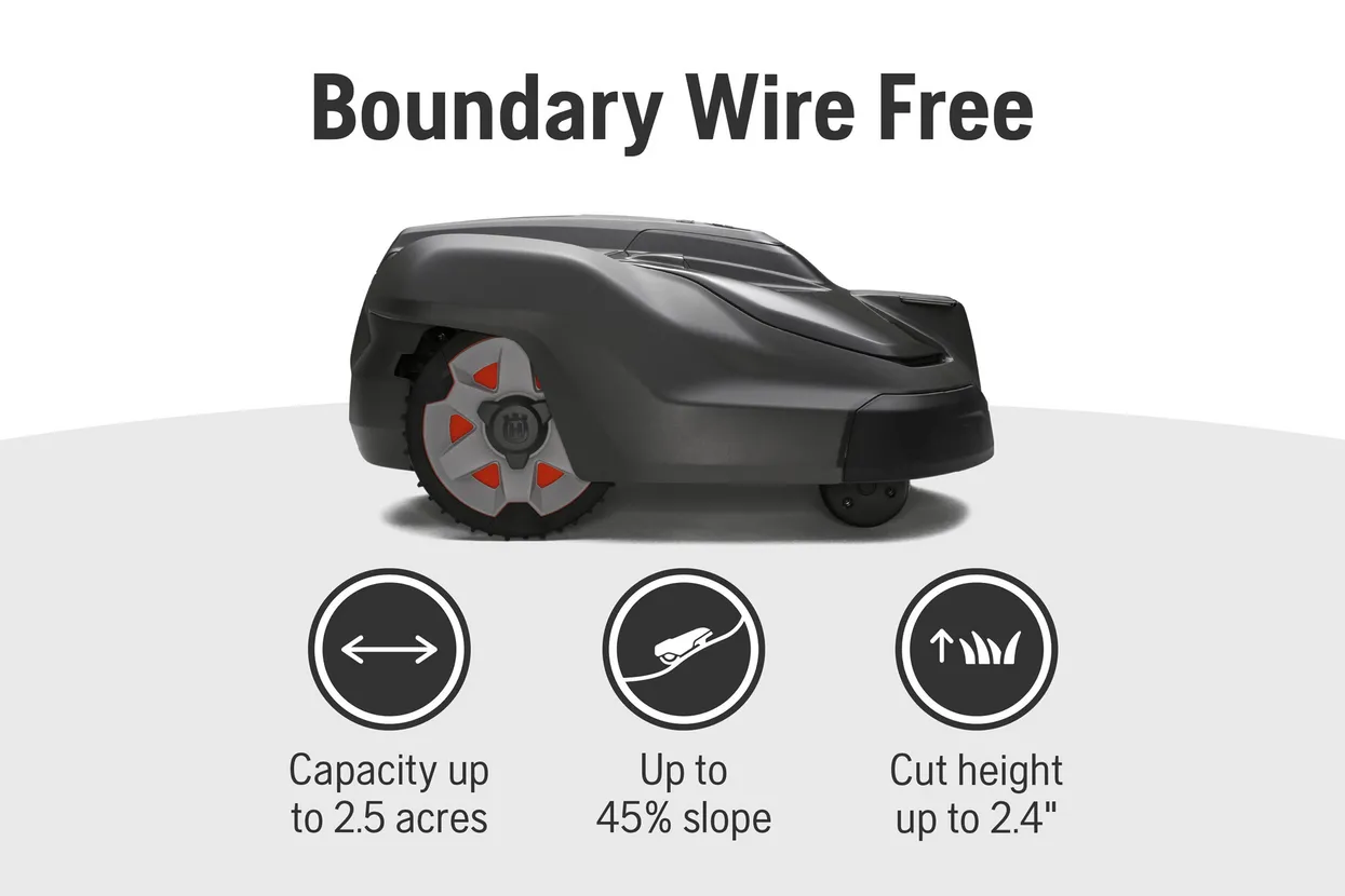 For a limited time, receive a free large installation kit during checkout when purchased online. Break free from boundary wires with Automower® 450X EPOS™! This residential, wire-free mowing solution, uses Husqvarna EPOS™ (Exact Positioning Operating System) to work within virtual boundaries. With total control from the Automower® Connect app, these mowers can tackle complex lawns, with custom stay-out zones, mowing schedules and cutting heights.